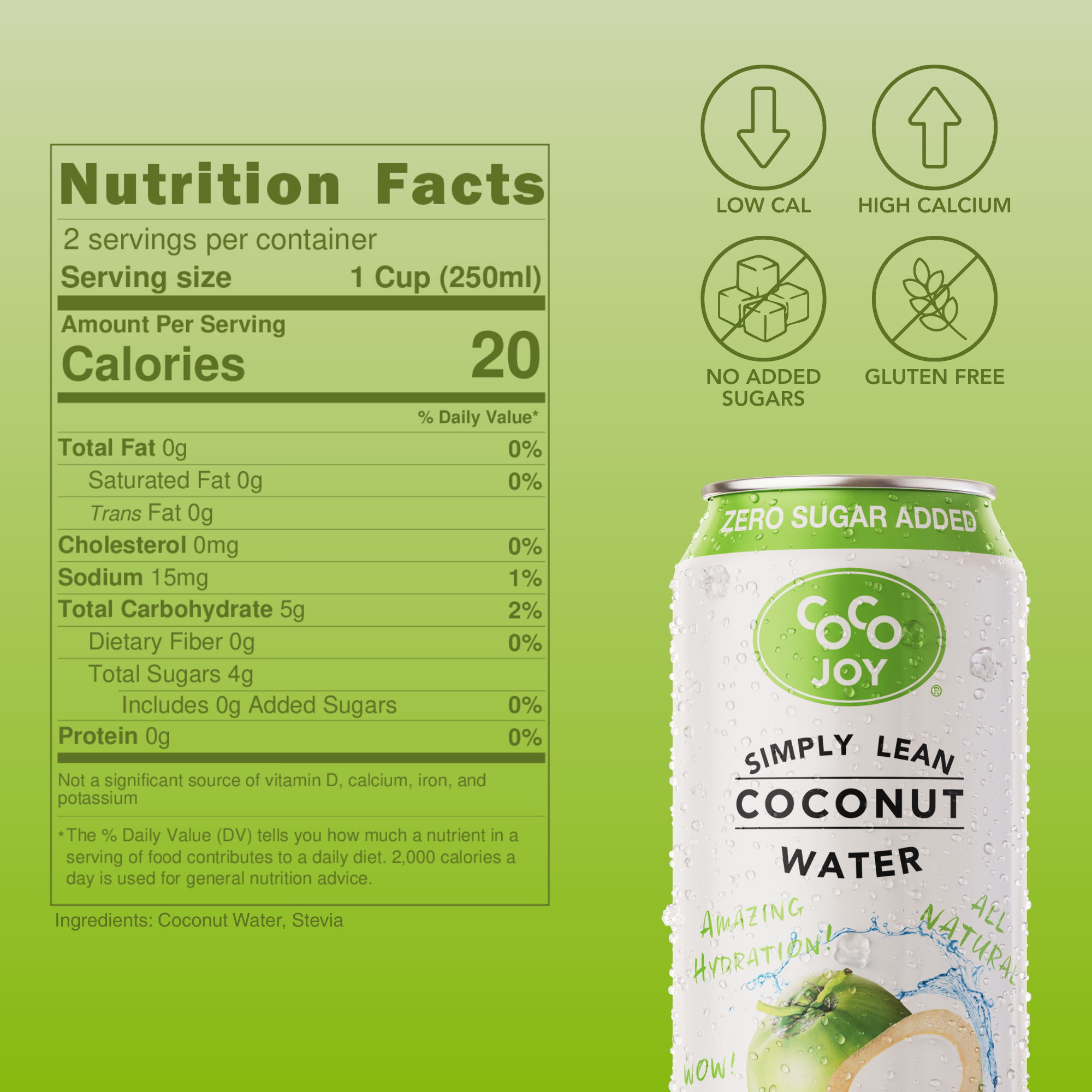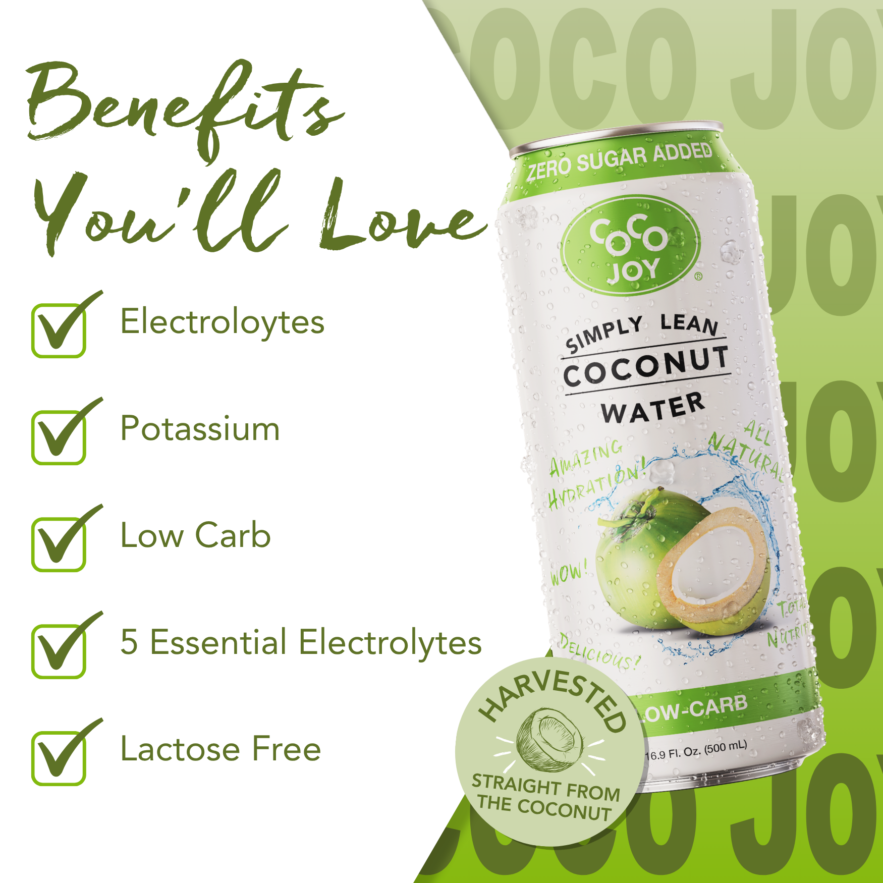 Give in to what feels good for your body with the added bonus of all the goodness CoCo Joy Natural Coconut Water delivers. Just another coconut water . . . not a chance! Our taste is part of what sets us apart. We harvest the young, green coconuts at peak times for the sweetest flavor and most nutrients we can deliver. Delicious, refreshing, no preservatives, and plenty of nutrients. We source non-GMO products with sustainable farming methods, and we are never from concentrate. CoCo Joy Coconut Water . . . where good things happen.